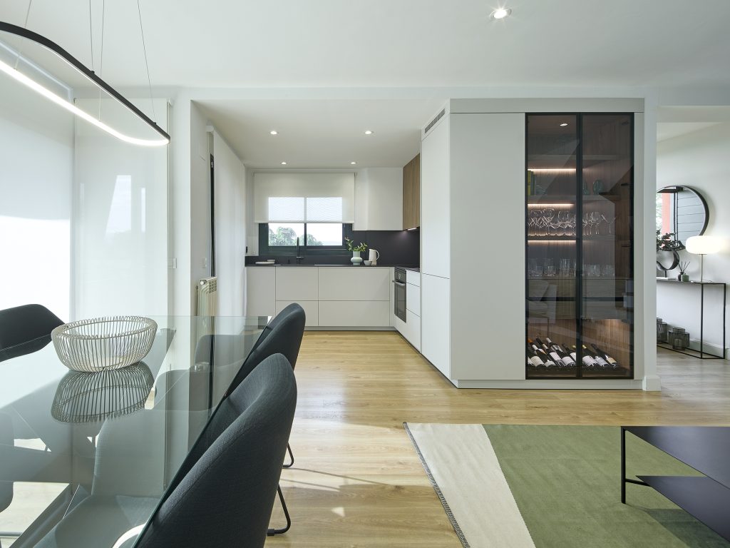 CUINA AMB VITRINA INTEGRADA; EQUILIBRI PERFECTE ENTRE CUINA I MENJADOR