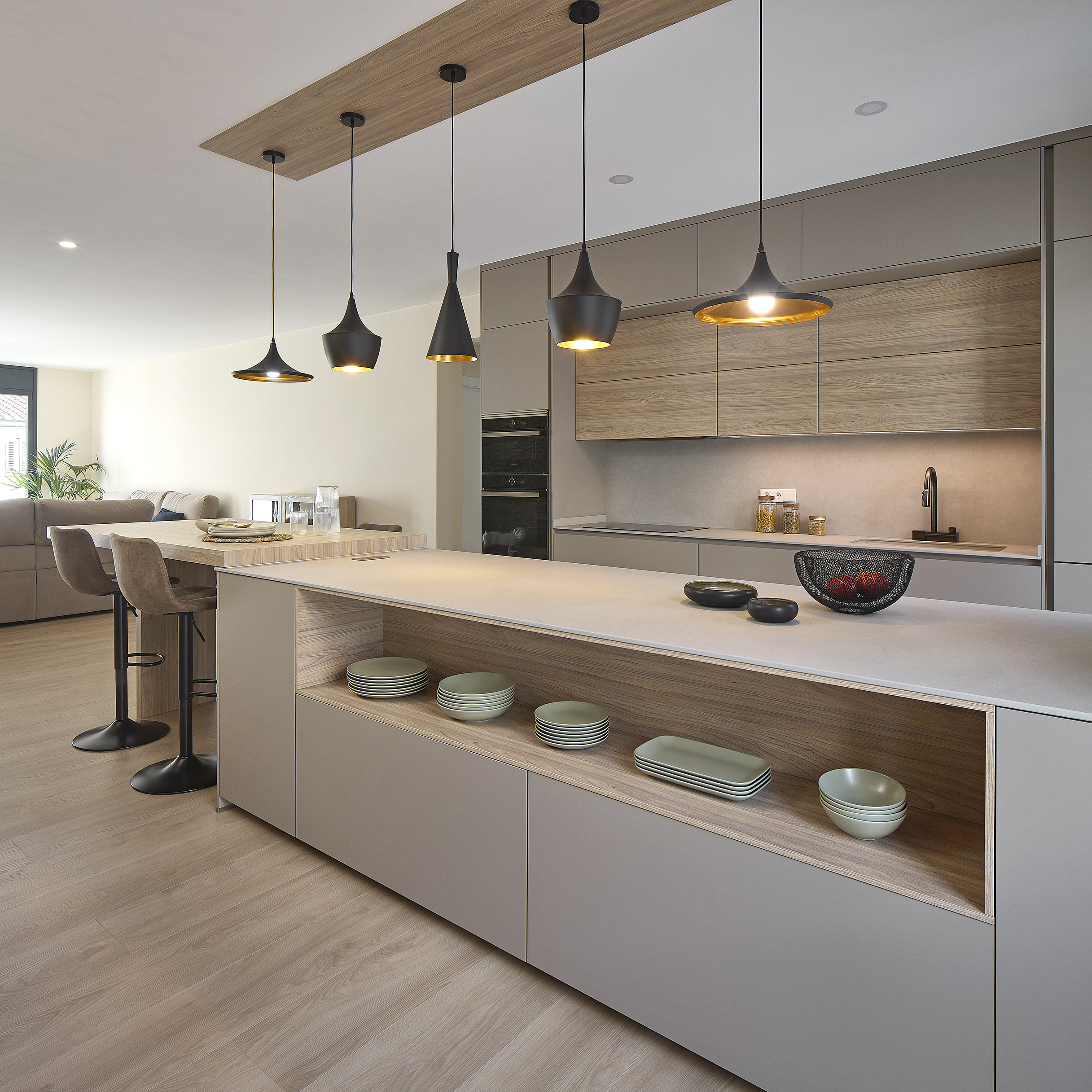 Il s’agit d’une cuisine conçue pour s’adapter aux rythmes et aux besoins de chaque maison. Que vous recherchiez un espace de travail pratique ou un cadre élégant pour recevoir, ce modèle offre polyvalence, confort et beauté durable.